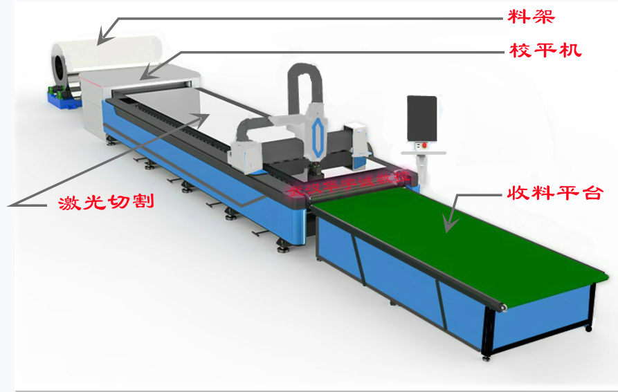 全自动上料风管激光91视频免费播放机床:包括卷料料架,校平装置,激光机床床体、接料平台,自动刀条旋转组件;工作原理:首次入料卷料通过校平机校平后进入激光切割平台进行切割,切割完成后校平机自动送料,旋转平台自动把切割完成的配件输送到接料平台,校平机送料完成后系统运行切割第二张排版图料件,同时可进行切好料件的编号收集工作,以此往复工作大大提高整体加工速度及效率。